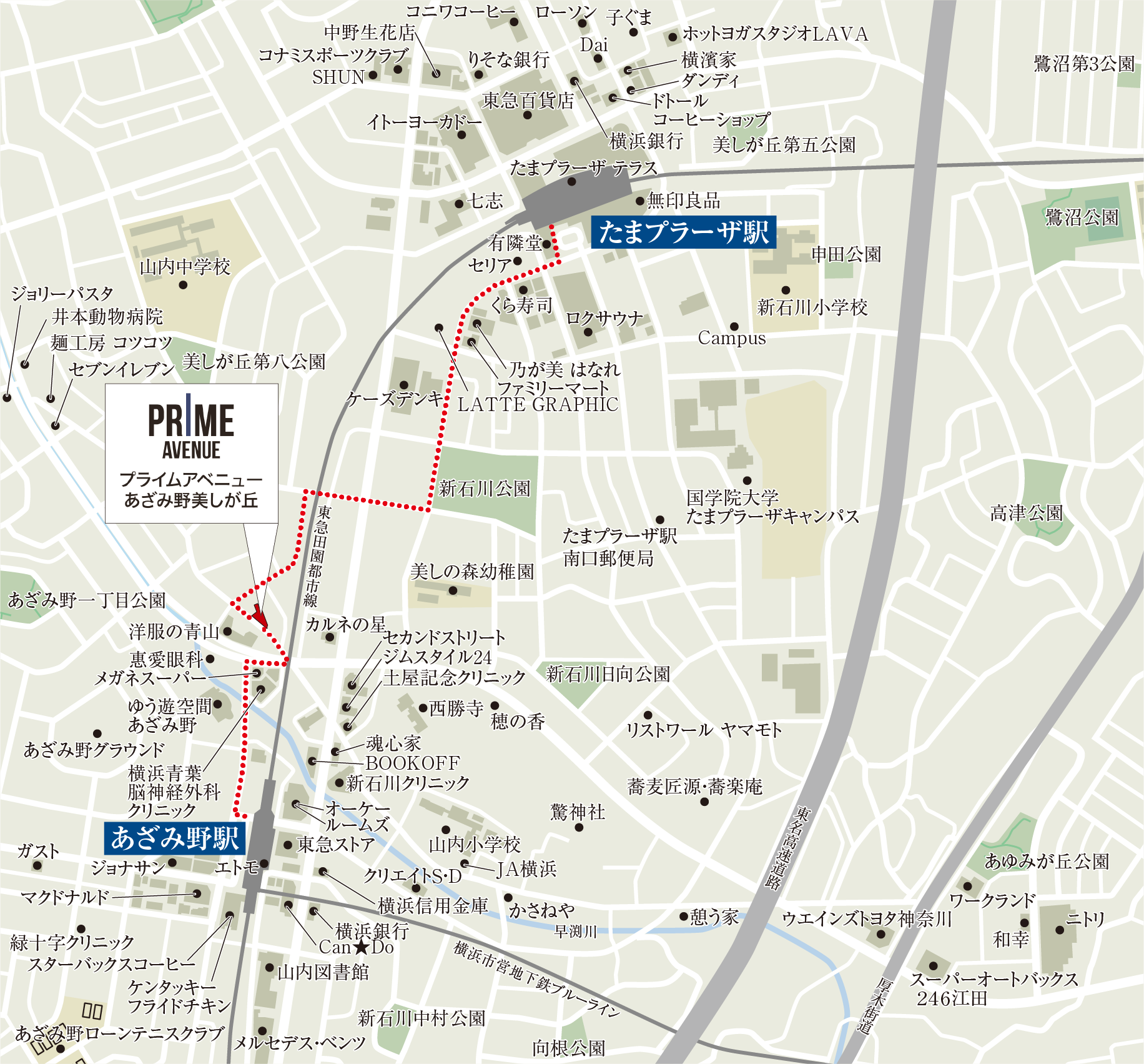 | 交通 | 東急田園都市線・横浜市営地下鉄ブルーライン「あざみ野駅」徒歩6分、東急田園都市線「たまプラーザ駅」徒歩12分 |